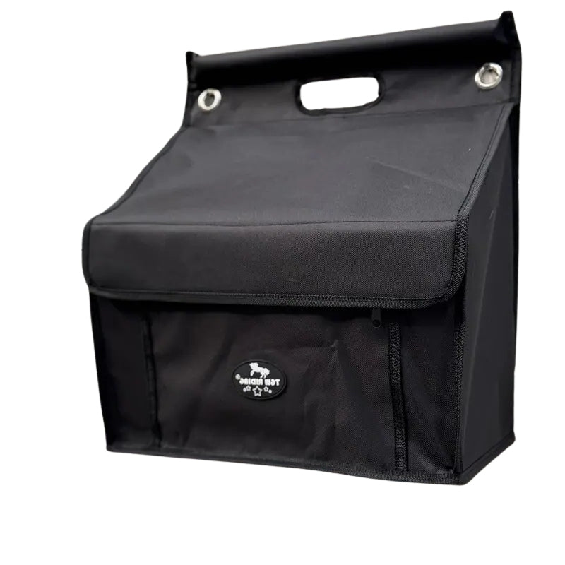 Cet organiseur de sellerie vous permet de garder tout votre matériel parfaitement rangé et toujours à portée de main : grâce à ses multiples poches et compartiments, vous y placez facilement brosses, produits de soin, bandes, accessoires de travail et petits équipements, tout en les protégeant de la poussière et de l’humidité. Conçu dans un tissu résistant et imperméable, il supporte sans problème l’usage quotidien à l’écurie et se nettoie d’un simple coup de chiffon. Vous pouvez le fixer dans votre sellerie, le suspendre près du box ou le transporter lors de vos déplacements, ce qui en fait un allié idéal pour garder vos affaires organisées, que vous soyez chez vous, en concours ou en pension.