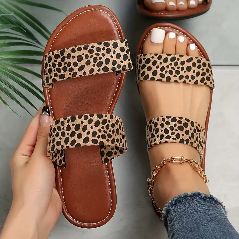 La sandale Léopard, conçue pour les femmes qui savent allier audace et raffinement. Ces sandales plates à motif léopard transforment instantanément une tenue basique en un look tendance. C'est la paire parfaite pour toutes les femmes. Vous savez, cette paire qui traîne toujours près de la porte d'entrée parce qu'elle va avec tout et qu'elle est si confortable qu'on la choisit instinctivement.