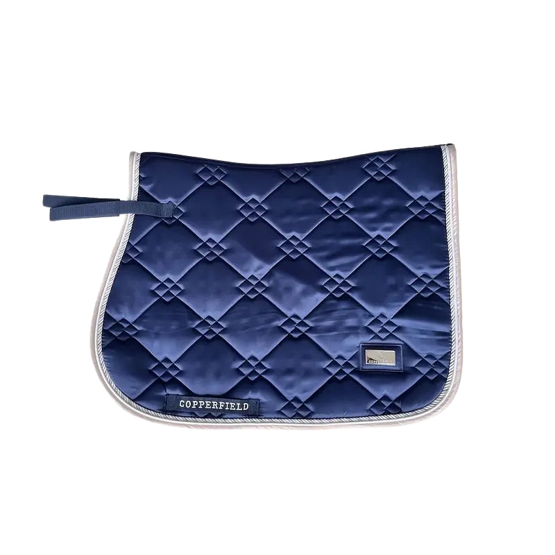 Le Tapis Équestre Satiné Prestige apporte à la fois style et confort à vos séances d’équitation : avec sa finition satinée bleu marine, ses surpiqûres matelassées en losanges et sa bordure argentée, il ajoute une vraie touche de sophistication à votre équipement, tout en offrant à votre cheval un excellent confort grâce à son rembourrage doux qui répartit la pression de la selle et limite les frottements ; ses sangles de fixation solides assurent un maintien parfait même lors des séances intensives, et ses matériaux de qualité, faciles à entretenir, gardent leur éclat au fil des utilisations.